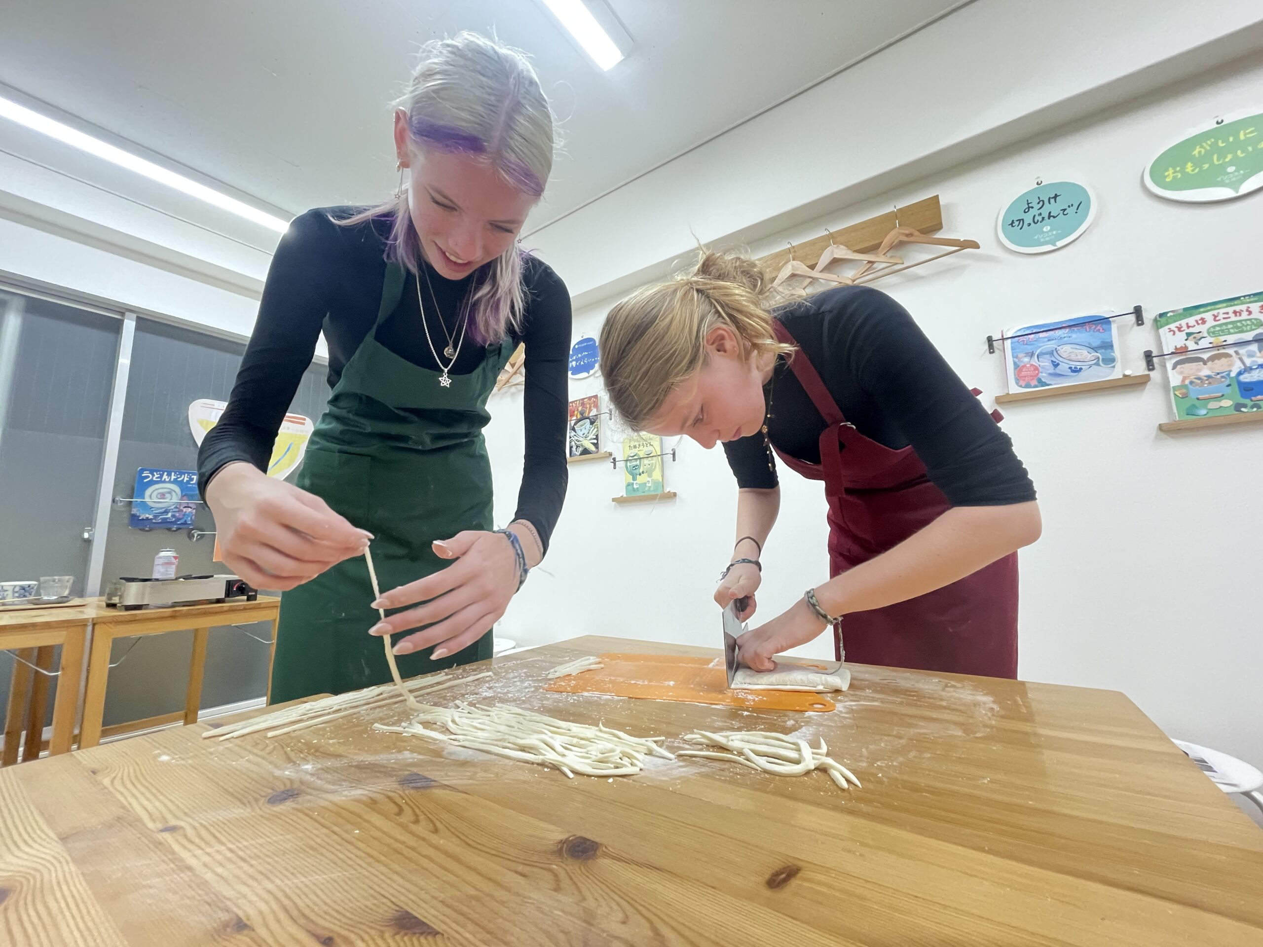 兄妹で協力してうどん作り